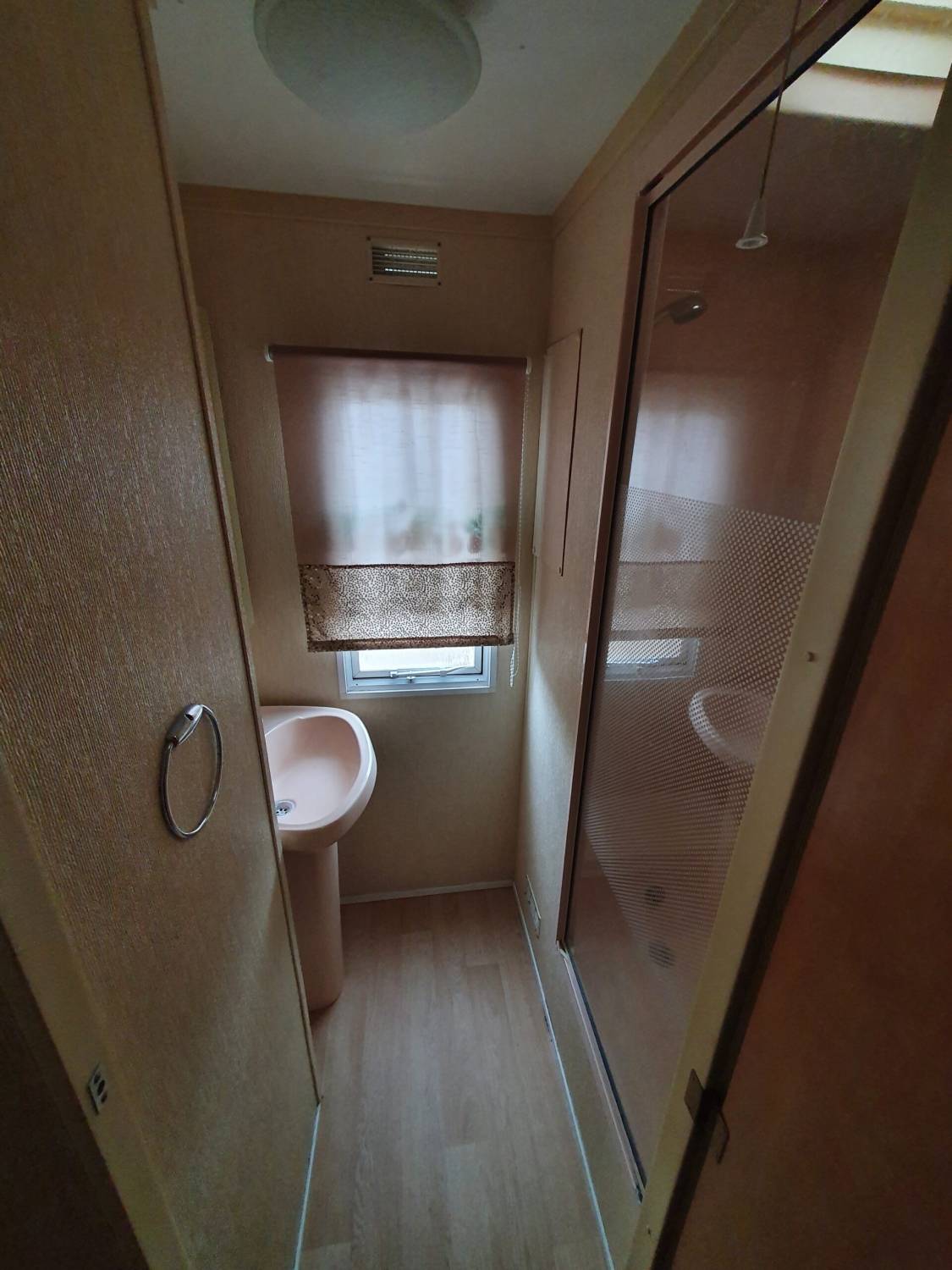 – łazienka z prysznicem i umywalką